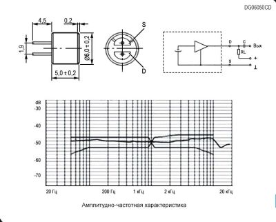 Микрофон электретный 4.5*2.2мм, на плату, 2в, 36..44дБ, всенаправленный, DG04522DD