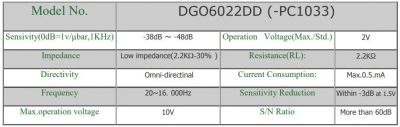 Микрофон электретный 6*2.2мм, на плату, 2в, 38..48дБ, всенаправленный, DG06022DD(-PC1033)