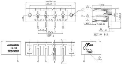 Клеммник разъемный 5.08мм, 5конт, 15а, 300в, угловой, 2EDGR-5.08-05P-14-00A(H)
