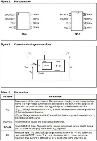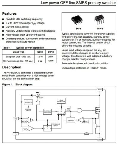 микросхема VIPer22a, ШИМ-контроллер, DIP8