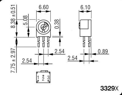 Резистор подстроечный 3296X, 10ом, 0.5вт, 10%, 9000°, 9.53*4.83*10мм, угловой, СП3-19Б