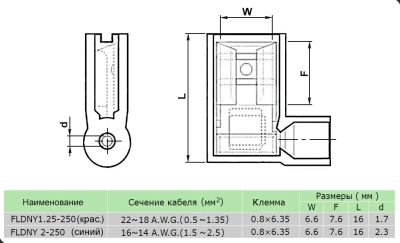 Разъем флажковый «мама» изолированный (РФИ-М(н) 2.5-6.3) 1.5-2.5кв.мм b=6.3мм синий