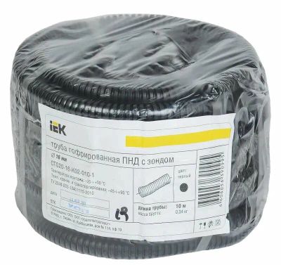 Труба гофрированная D16мм/ПНД, протяжка, IP55 упак. 10м черная IEK CTG20-16-K02-010-1