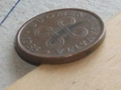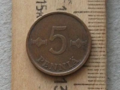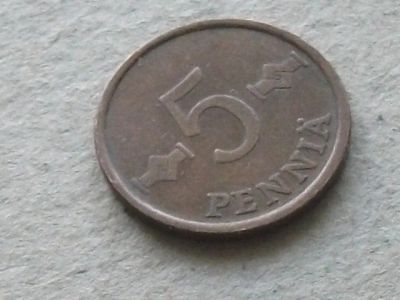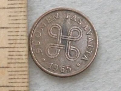 Монета 5 пенни пять Финляндия 1965 рунический знак хорошая