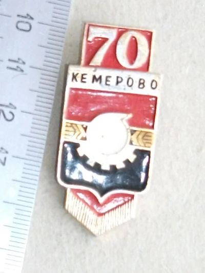 Значок Кемерово 70 лет герб столица Кузбасса клеймо АЛ б/у