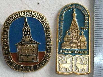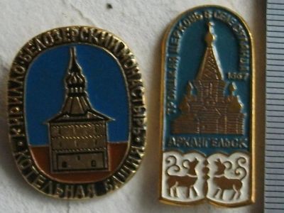 Значок 2шт Котельная башня + церковь Суланда Архангельск архитектура СССР АЛ