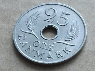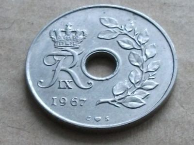 Монета 25 эри оре ере Дания 1967 флора вензель корона хорошая