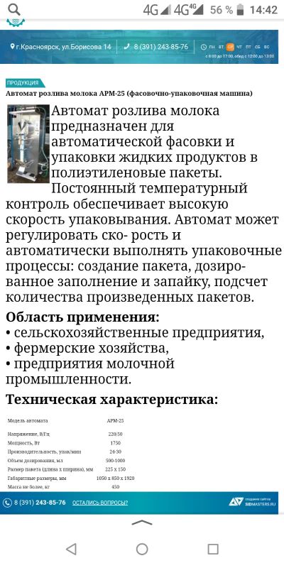 Линия по пакетированию молока