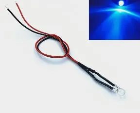 Светодиод 3 мм прозрачный синий на проводе, 5-12 Вольт