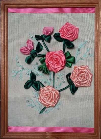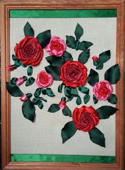 Картина из лент "Бордовые розы"