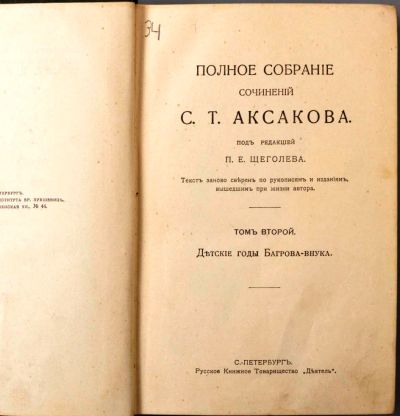Аксаков С.Т. Полное собрание сочинений С.Т. Аксакова. * Том 2. Детские годы Багрова-внука.* 1912 год издания * " Аленький цветочек" есть . *