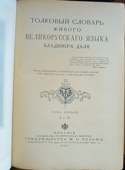 В.И.Даль.Толковый словарь живого великорусского языка.1903-14 год издания .4 тома(комплект ) + отчёт о присуждениии ломоносовской премии за словарь 1870 год. Издание содержит матерные и скверные слова русского языка.