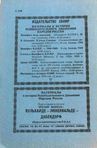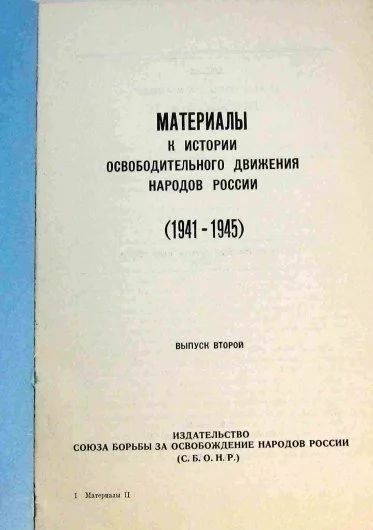 Материалы к истории Освободительного движения народов России (1941 - 1945). Выпуск второй. * 1970 год издания * эмигрантское издание.*