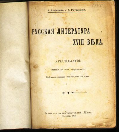 А.Алферов. А.ГрузинскиЙ.Русская литература XVIII века. Хрестоматия. * 1915 год издания. *