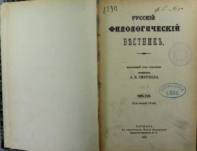 Русский филологический вестник, издаваемый под ред. профессора А.И. Смирнова. Том 23. * 1890 год издания. *