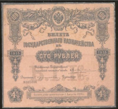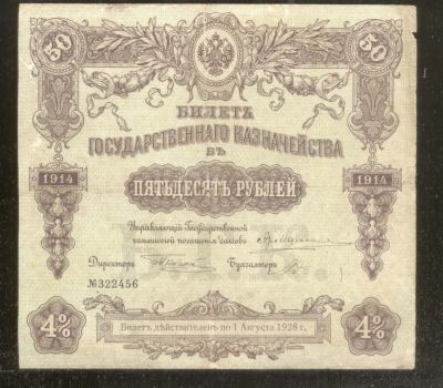 Билет Государственного Казначейства.50 рублей 1914 год. № 322456 * + Билет Государственного Казначейства.100 рублей 1915 год. № 085686 *