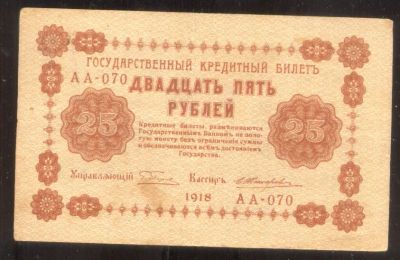 25 рублей * Р.С.Ф.С.Р. * 1918 год.* АА-070*