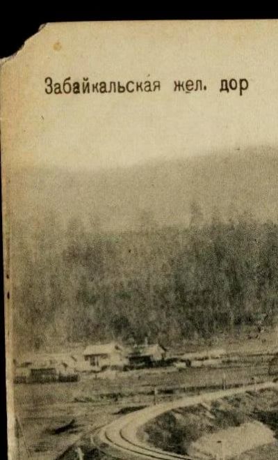 дореволюционная видовая открытка * чистая * Кругобайкальская Ж. Д. дорога через тайгу Ст. Выдрино *