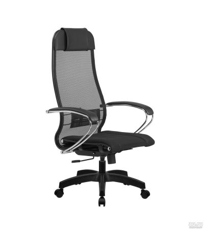 Кресло МЕТТА Комплект 1 черное ( 120 кг / Ткань-сетка / Пятилучие Пласт. тр. сечение / Топ-Ган ) Гарантия ! Бесплатная доставка 7-14дн.( Metta // офисное /компьютерное/на колесах, колесиках/оператора/руководителя/директора)