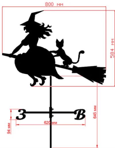 Флюгер "Ведьма" версия 2 для установки на кровлю. (металл 2мм / покрытие порошковое / крепление универсальное)
