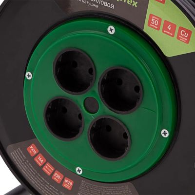 Удлинитель силовой 50 м, 16А, тип УХ10, ПВС, на кабельной катушке, 4 розетки без заземления Сибртех