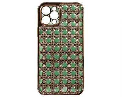 Чехол Apple iPhone 12 (A2403) силиконовый - Зелёный (Стразы, Защита камеры)