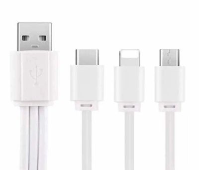 Кабель 2 в 2 Type-C + USB - Type-C + Lightning (1 метр, 3 Ампера, ткань) - Плоский. В наличии на Алексеева