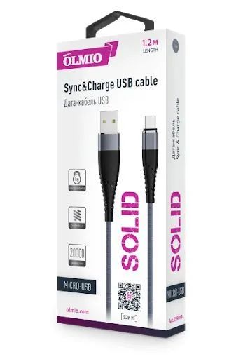 Кабель Solid USB->microUSB 1.2m 2.1A титан. OLMIO