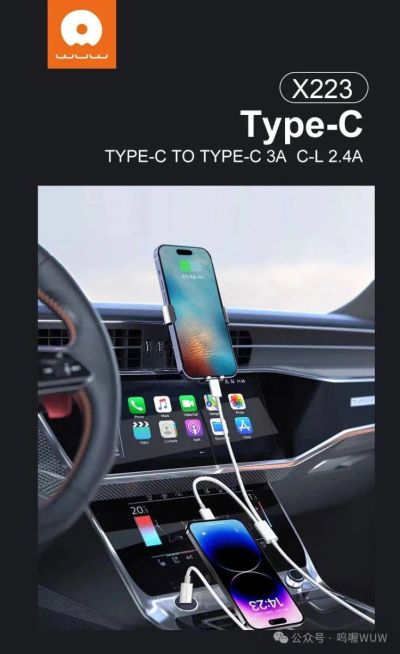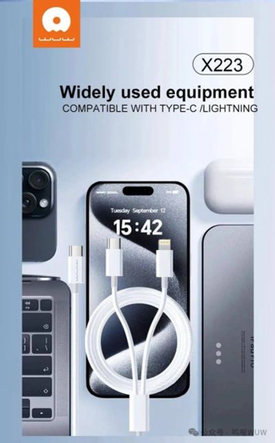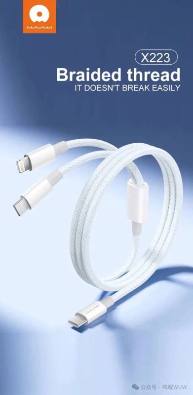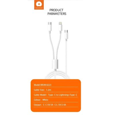 Кабель WUW X223 2in1 Type-C->Lighting+Type-C 1.2m White