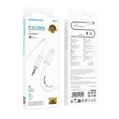 Кабель BOROFONE LIGHTNING->AUX BL21 White
