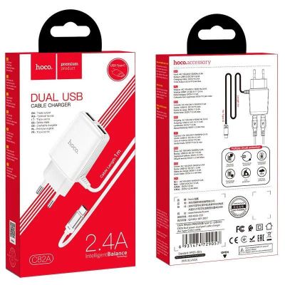 СЗУ HOCO C82A dual USB port+Lightning 2.4A (White)