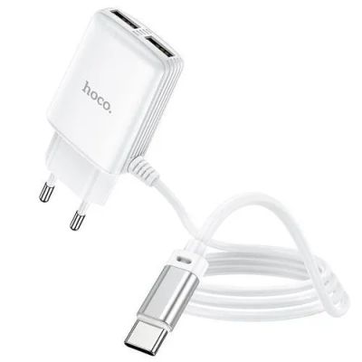 СЗУ HOCO C82A dual USB port + Type-C 2.4A (White)