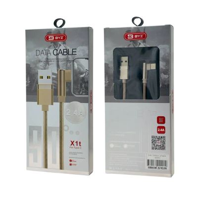 КАБЕЛЬ BYZ X1t AM-Type-C 1,2 метра, 2.4A, силикон, угловой, золото