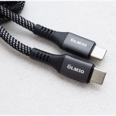 Кабель PD, OLMIO USB2.0, Type-C - Type-C, 1.2м, тканевая оплетка, усиленный, черный