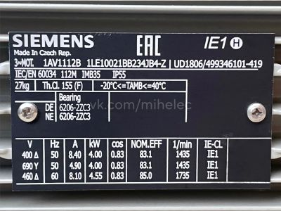 Электродвигатель Siemens 1AV1112B 1LE10021BB234JB4-Z 112M IM2081 (IMB35), 4 кВт 1435 об/мин
