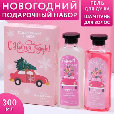 Новогодний набор гель + шампунь "Машина с елкой" / символ года, зайка, кошка, кролик - разное / Купиподарок