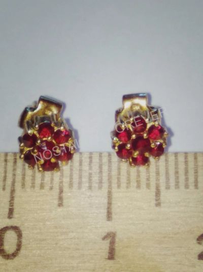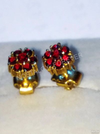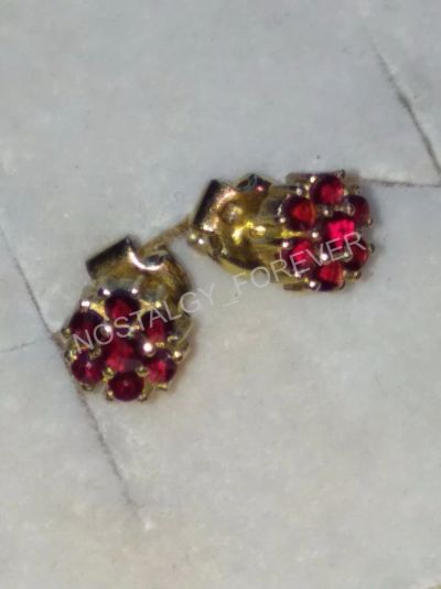 Серьги чешские богемские гранаты серебро / золото