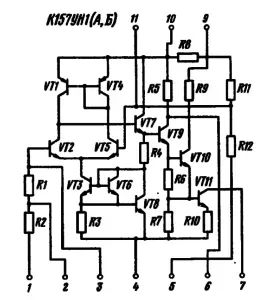 К157УН1А, микросхема, трехкаскадный предварительный УНЧ.
