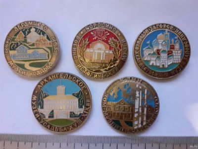 ( №11496) значки города России,Загорск исторические здания 5 шт лотом