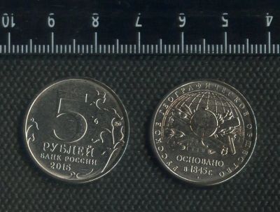 5 рублей 2015 года Российское географическое общество,без обращения(современная Россия юбилейка)