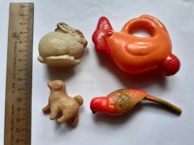 фигурки,Собачка,красивая Птичка,Петушок и Зайчик(кролик), животные,куклы,целулоид,из СССР,лотом (раздел игрушки)