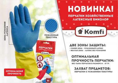 Перчатки резиновые KOMFI /размер L/ сине-желтые /122698/
