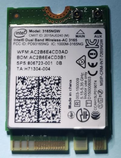 Адаптер беспроводной связи Intel Dual Band Wireless-AC 3165NGW