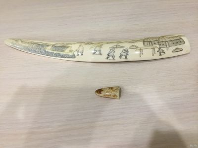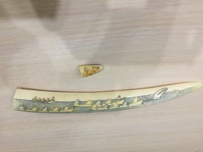 моржовый бивень , клык , резьба, антиквариат