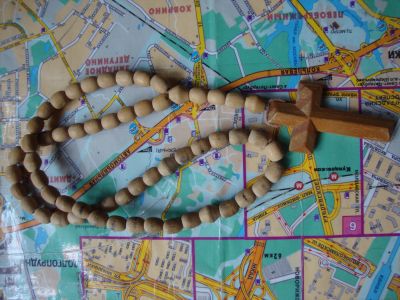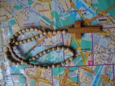 крест деревянный на деревяной цепи (четки)