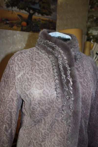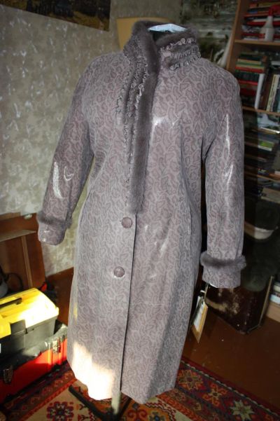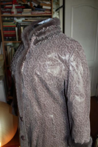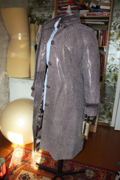 пальто новое, демисезонное женское Alienscene (Италия) кожаное с лазерной обработкой 4XL отделка норкой