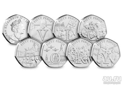 набор 7 х 50 пенсов 2020 г. о-в Мэн, 75 лет Победы, Victory