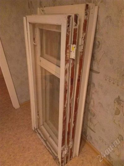 Оконные рамы со стеклами (б/у, деревянные, 4 штуки) {окно, рама, стекло, дерево}