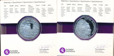 Финляндия 10 евро 2013 150 лет София Маннергейм cеребро Ag Proof