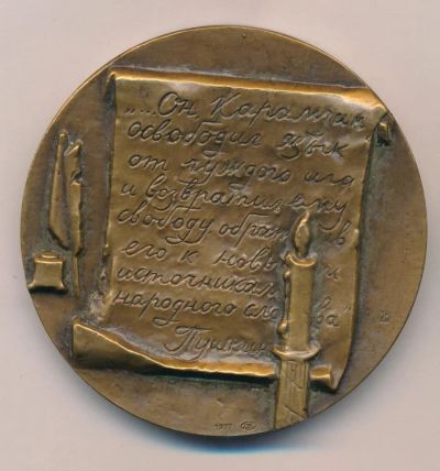 СССР Медаль 1977 ЛМД Николай Карамзин 150 лет со смерти Медальер М. Б. Романовская D - 60mm Томпак